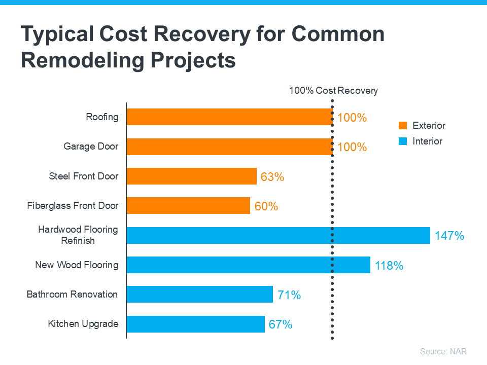 The 2022 Remodeling Impact Report from the National Association of REALTORS® (NAR) highlights popular home improvements and what sort of return they bring for the investment (see graph below):