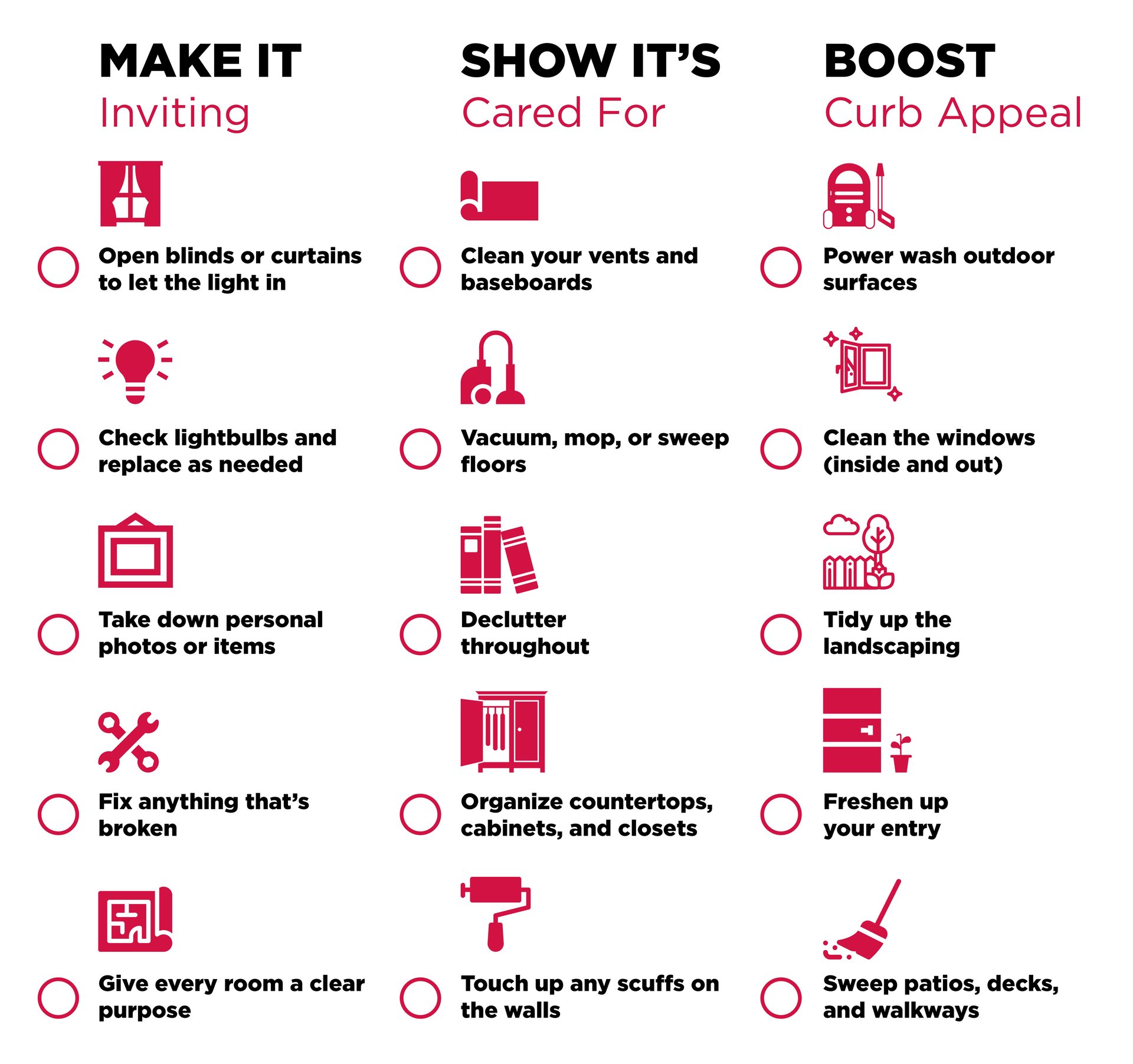 As you get ready to sell your house, add these items to your to-do list. A real estate professional will also provide other helpful tips based on your specific situation.