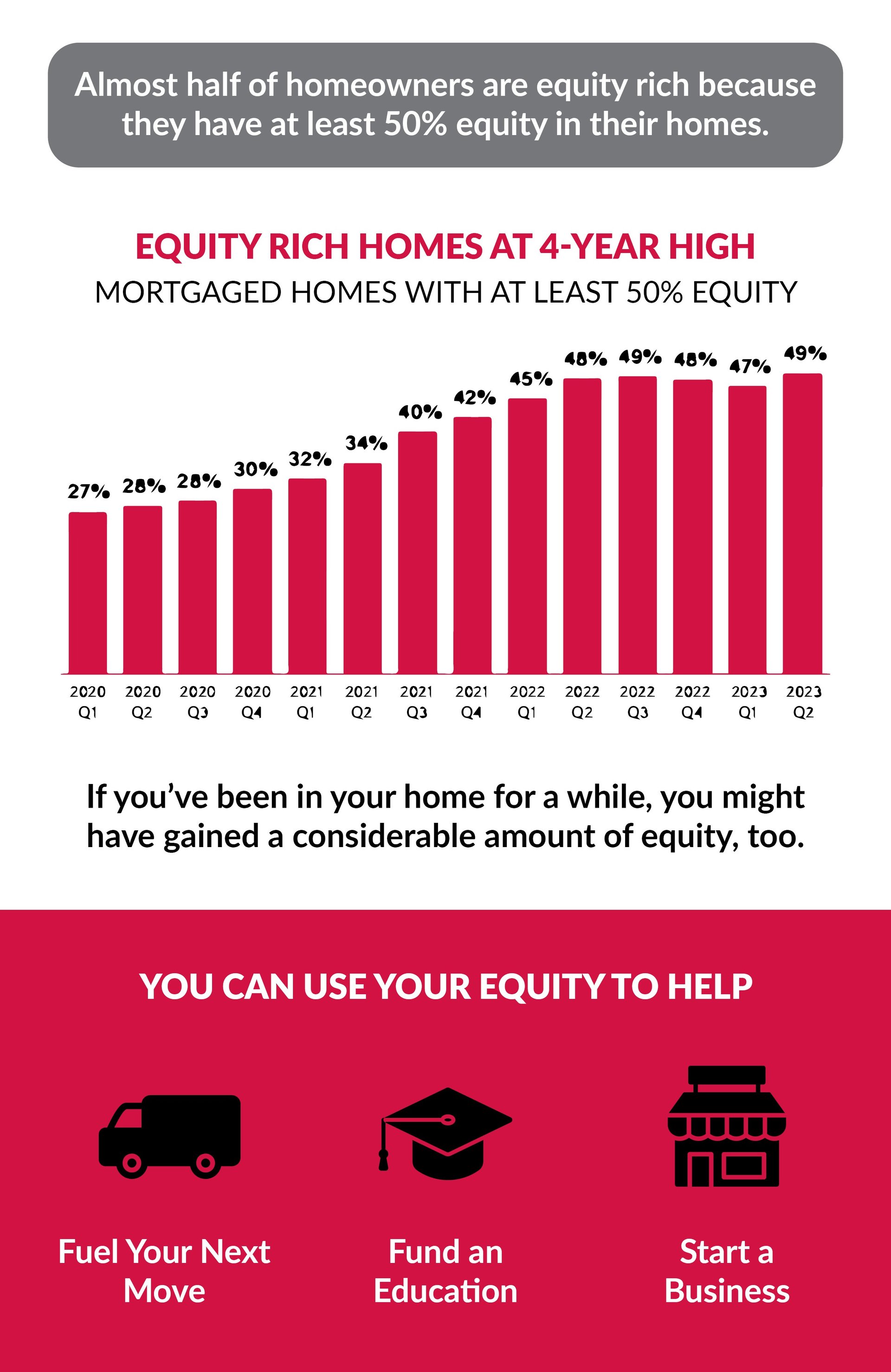 Your equity grows as you pay down your home loan and as home prices increase. With home prices rising again, your equity is getting an extra boost.